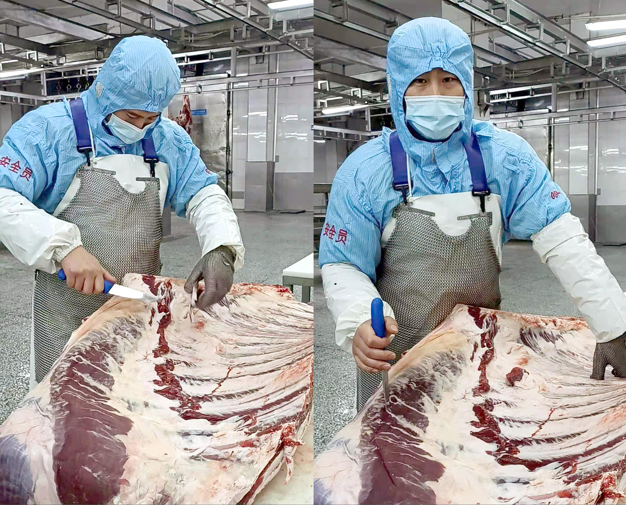 雖然已經(jīng)成為管理者和導(dǎo)師,但張磊仍然不斷積累一線(xiàn)工作的經(jīng)驗(yàn),曾有7小時(shí)分割10頭整牛的經(jīng)歷,2013年,他創(chuàng)新研究出“上腦眼肉分切下刀位置改變”手法,提升了產(chǎn)品價(jià)值,在工作中被廣泛使用。